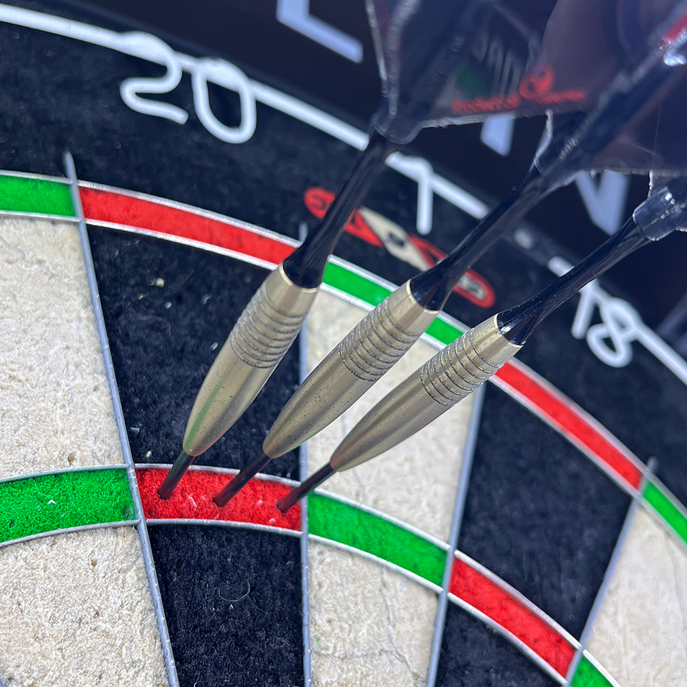 Spelers die gewend zijn aan rechte barrels merken aanvankelijk dat de voorkant wat zwaarder aanvoelt. Toch blijkt juist die gewichtsverdeling een kracht: na een paar legs komt er meer gevoel in de release, en vliegt de dart opvallend recht en stabiel richting het bord, zonder kantelen. Vooral bij een rustig, gecontroleerd tempo schitteren deze pijlen echt.